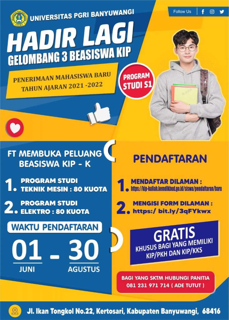 Penerimaan Mahasiswa Baru 2021 BEASISWA KIP GELOMBANG 3